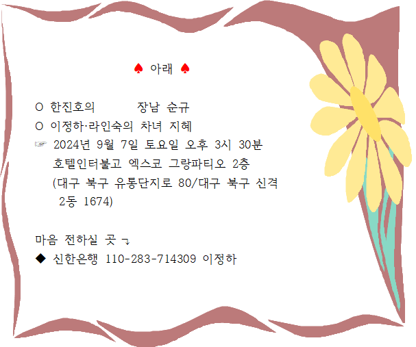 북청읍민 이정하 님 자녀 결혼식 안내